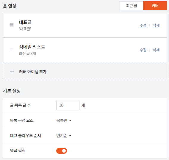 홈 설정 > 커버